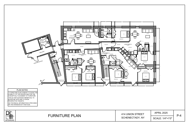 DCL Interiors was hired to produce plans to submit to the local building department for a redesign/remodel of an historic building with existing offices into a luxury loft style apartment complex. We demolished the entire previous office suite structure and created a whole new plan for several new and beautiful apartments with lots of natural light and historic exposed building features. It is our hope that all the new tenants love their new custom designed homes!