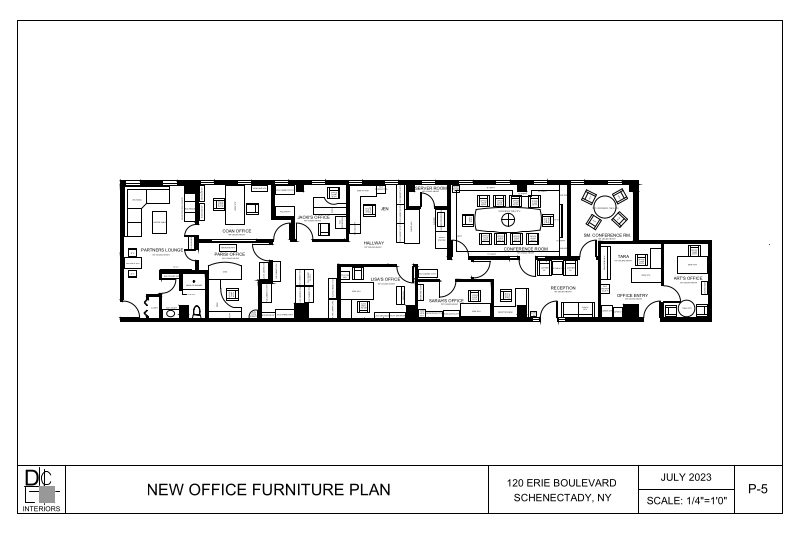 DCL Interiors was hired to draft plans for an office suite redesign/remodel for a local law firm. We demolished the entire previous office suite structure and created a whole new office suite of private offices, conference areas, storage and client spaces. One of my favorite details of this project was the request to add interior windows in the office suite to allow the beautiful natural light from the exterior wall to flood through the rest of the space. We were also asked to supply/suggest the building materials as well as suggestions for commercial contractors to complete the project. We were thrilled to supply everything from plans to flooring to cabinets, built ins, countertops, lighting etc. We hope that the client enjoys the comfort of their newly custom designed space!